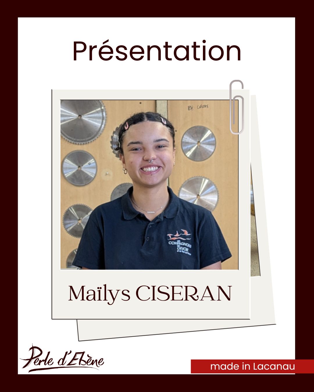 L’atelier Perle d’Ébène s’agrandit ! Depuis quelques jours, nous avons le plaisir d’accueillir Maïlys, 20 ans, qui rejoint notre équipe en tant qu’apprentie en CTM (Certificat Technique des Métiers) ébénisterie.