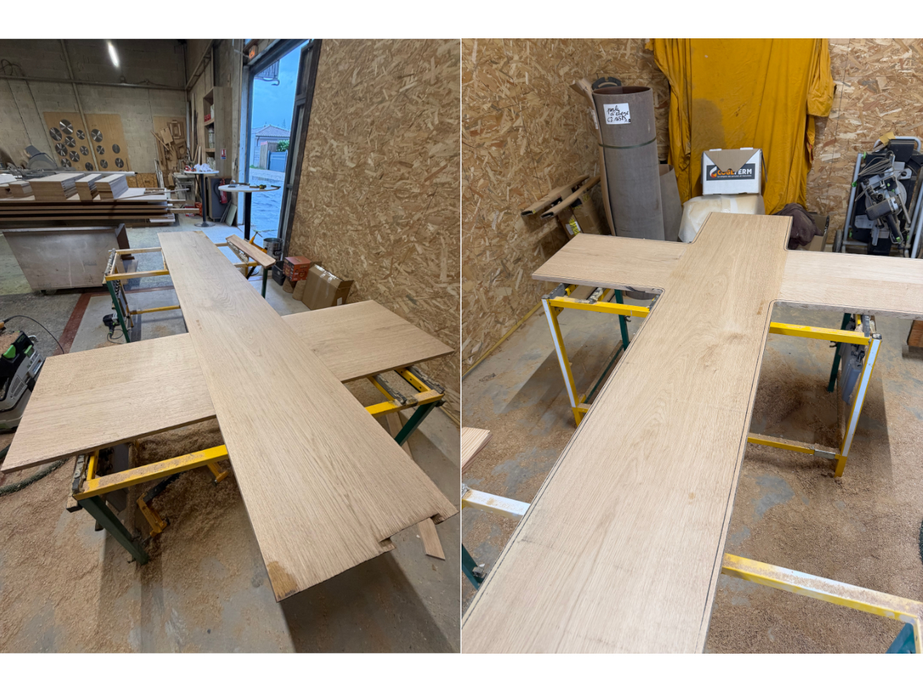 Tout a commencé avec une sélection rigoureuse de plateaux de chêne massif, soigneusement choisis pour leur stabilité, leur finesse de grain et leur durabilité. À partir de cette matière brute, nous avons façonné la croix dans notre atelier : débit, usinage, assemblage, mise en forme, ponçage et finitions. Chaque étape a été réalisée avec précision pour garantir une pièce à la fois solide, élégante et fidèle au caractère du bois.