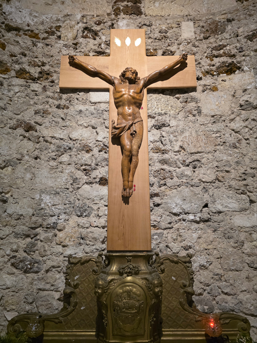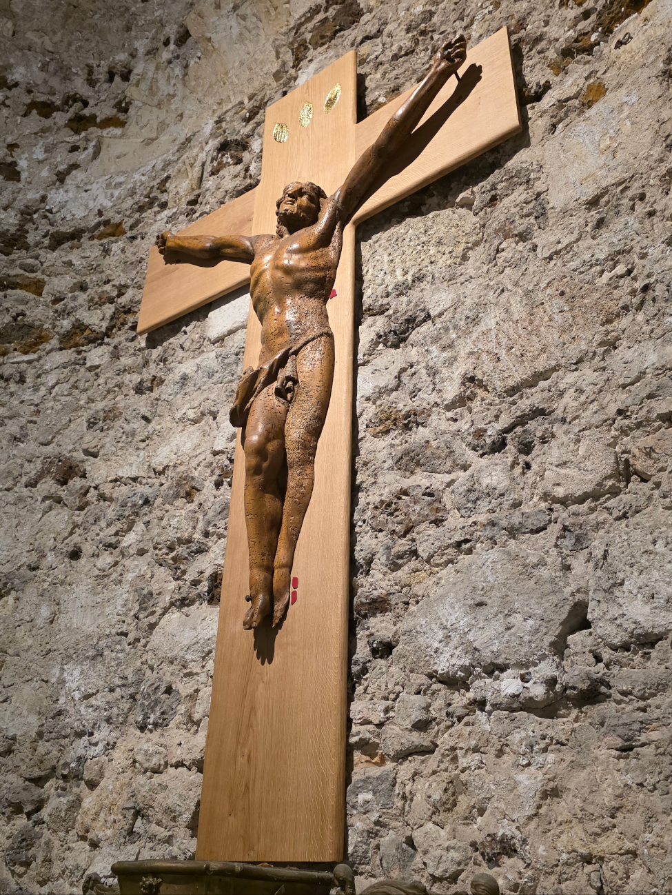La croix a ensuite été installée — installation réalisée par les équipes de l’église — dans l’église de Lacanau-Ville, où elle s’intègre aujourd’hui parfaitement au patrimoine et à l’architecture intérieure. Cette collaboration entre artisans et artiste a permis de créer une pièce à la fois authentique, durable et profondément symbolique.