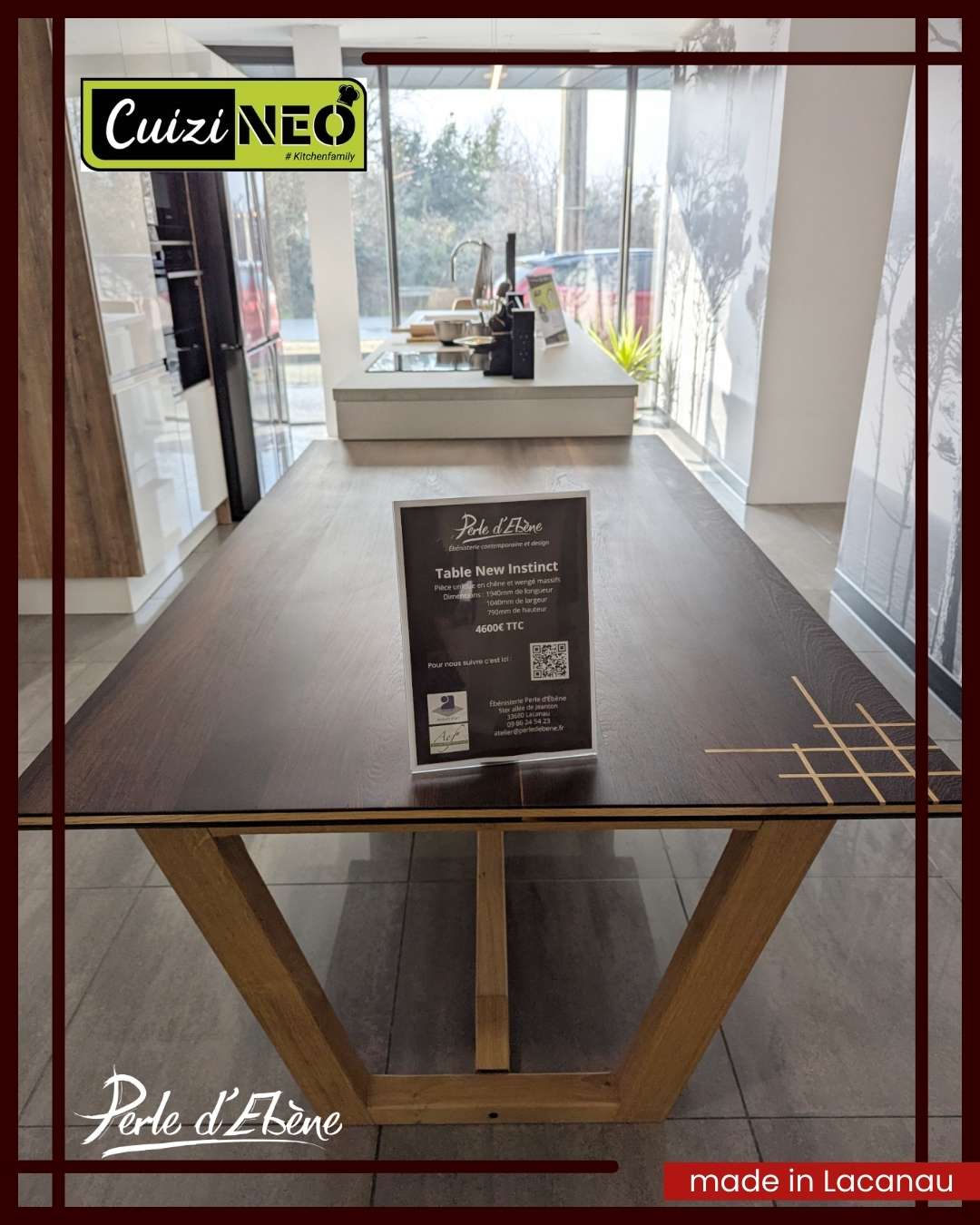 Découvrez ou redécouvrez la table New Instinct exposée chez le cuisiniste Cuizinéo à Mérignac.